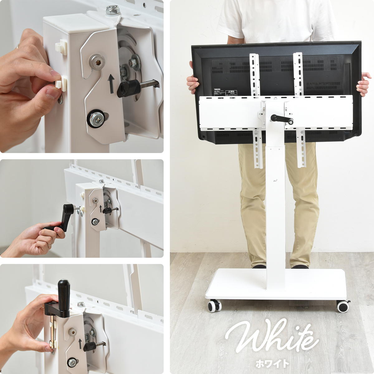 ¥Æ¥ì¥Ó¤òÀßÃÖ¤·¤¿¤Þ¤Þ¡¢¥Ï¥ó¥É¥ë¤ò²ó¤¹¤À¤±¤Ç¹â¤µÄ´À°¤¬½ÐÍè¤ë¡¢ËÜÂÎÂѲٽÅ50kg¤Î¥Æ¥ì¥Ó¥¹¥¿¥ó¥É¡£¥Æ¥ì¥Ó¤òÉÕ¤±¤¿¤Þ¤Þ¤Ç¾º¹ß¤Ç¤¤ë¤Î¤Ç¼è¤ê³°¤·¤Î¼ê´Ö¤¬É¬Íפ¢¤ê¤Þ¤»¤ó¡£Ä㤤°ÌÃ֤˥ƥì¥Ó¤òÀßÃÖ¤¹¤ì¤Ð¡¢ºÂ¤Ã¤Æ¤Î²ñµÄ¤ä¡¢¼õÉÕ¤äÂԹ缼¤Î¥¤¥ó¥Õ¥©¥á¡¼¥·¥ç¥ó¤Ë¡£¹â¤¤°ÌÃ֤˥ƥì¥Ó¤òÀßÃÖ¤¹¤ì¤Ð¥×¥ì¥¼¥ó¥â¥Ë¥¿¡¼¡¢³Ø¹»¤Î¹ÖµÁ¼¼¡¢Å¸¼¨²ñ¤Î¥Ö¡¼¥¹¤Ëư¤¤Î¤¢¤ëPOP¤ÇÌܤò°ú¤¯Å¸¼¨¤Ë¡£¤Þ¤¿¡¢¥Æ¥ì¥ÓÍѥ֥饱¥Ã¥È¤ò²óž¤µ¤»¤ë¤È¡¢¥Æ¥ì¥Ó¤ò½Ä¸þ¤¤ËÀßÃ֤Ǥ¡¢¥Ç¥¸¥¿¥ë¥µ¥¤¥Í¡¼¥¸¤Ë¤âOK¡£