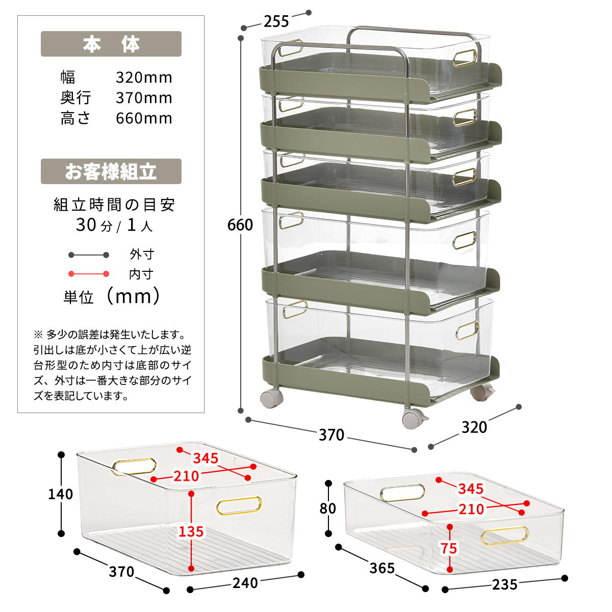 ¾¦ÉÊ¥µ¥¤¥º¡§Éý 320 ¡ß ±ü¹Ô 370 ¡ß ¹â¤µ 660 mm