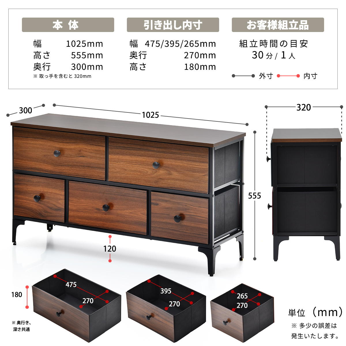 ¾¦ÉÊ¥µ¥¤¥º¡§Éý 1025 ¡ß ±ü¹Ô 300 ¡ß ¹â¤µ 555 mm