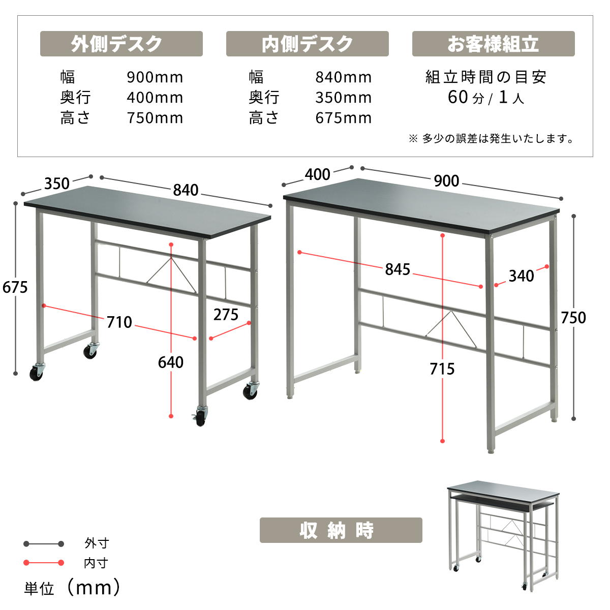 ¾¦ÉÊ¥µ¥¤¥º¡§(Âç¡ËÉý 900 ¡ß ±ü¹Ô 400 ¡ß ¹â¤µ 750 mm / (¾®¡ËÉý 840 ¡ß ±ü¹Ô 350 ¡ß ¹â¤µ 675 mm