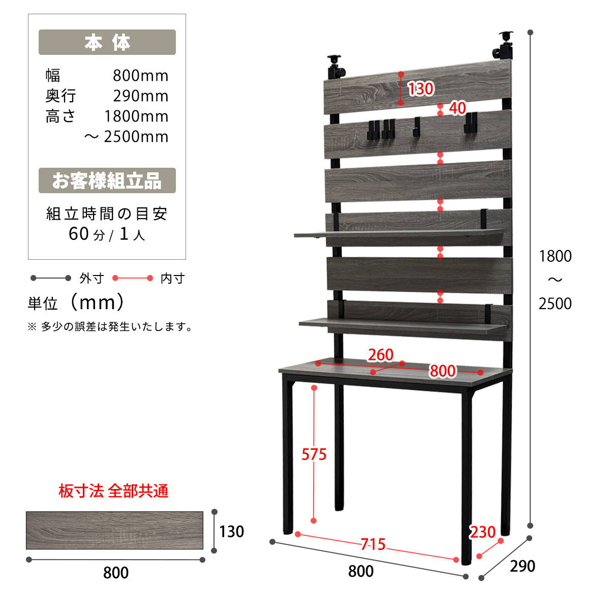 ¾¦ÉÊ¥µ¥¤¥º¡§Éý 800 ¡ß ±ü¹Ô 290 ¡ß ¹â¤µ 1800¡Á2550 mm