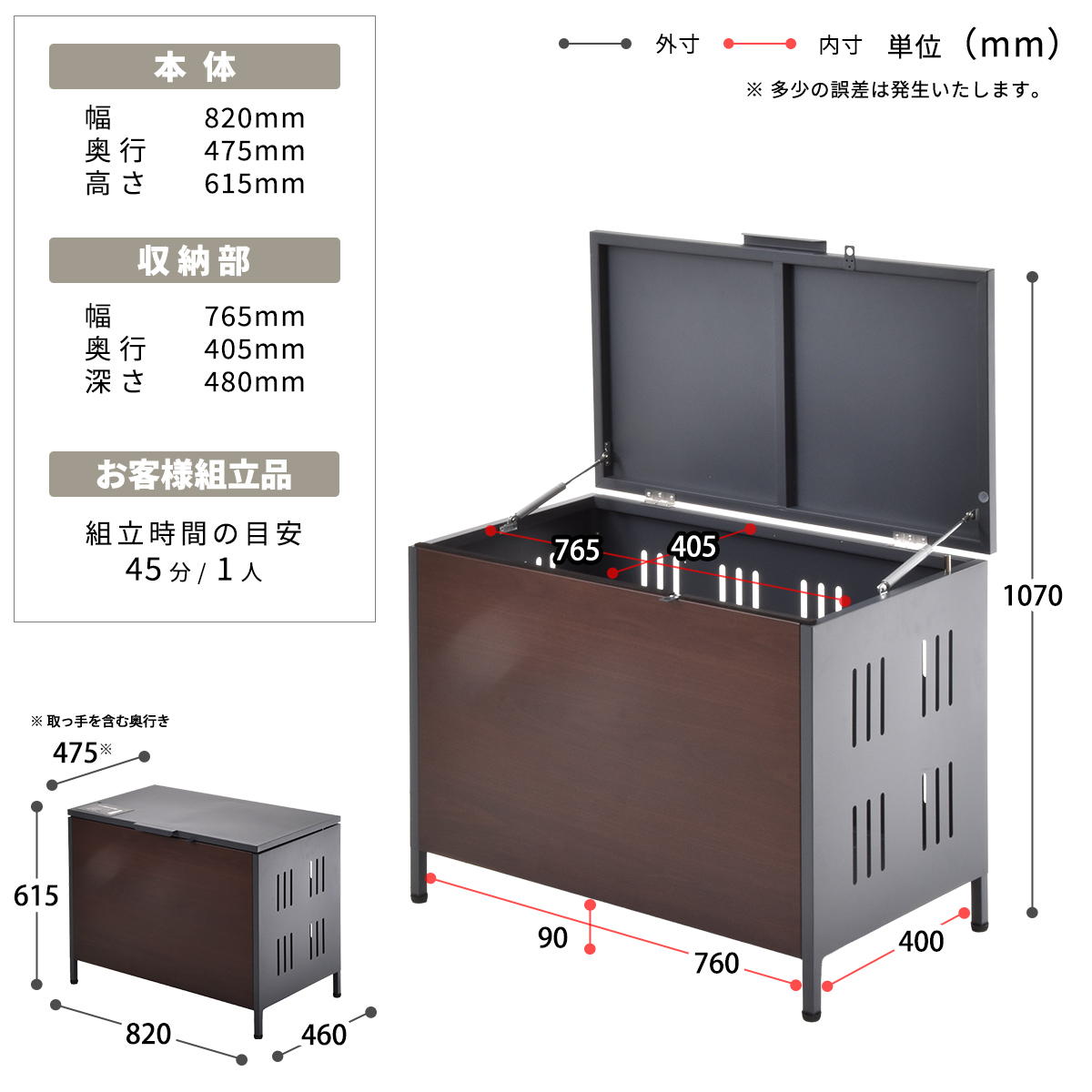 ¾¦ÉÊ¥µ¥¤¥º¡§Éý 820 ¡ß ±ü¹Ô 475 ¡ß ¹â¤µ 615 mm