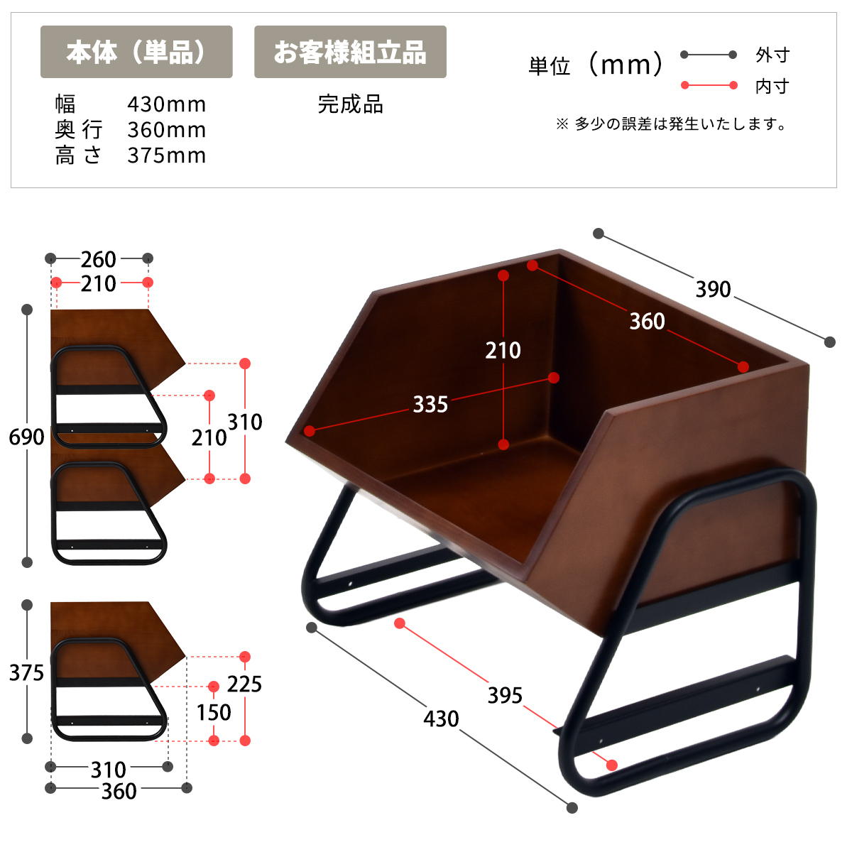 ¾¦ÉÊ¥µ¥¤¥º¡§Éý 430 ¡ß ±ü¹Ô 360 ¡ß ¹â¤µ 375 mm